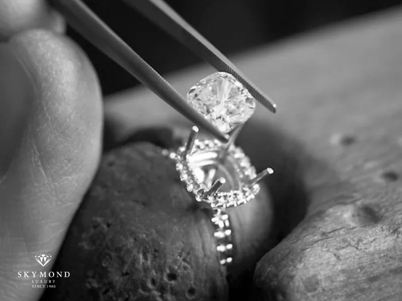 - Sử dụng kỹ thuật "Chấu ảo": Một số kiểu chấu được nghệ nhân mài bóng loáng như gương xung quanh viên đá, tạo cảm giác đó là một phần của kim cương, giúp viên chủ trông to thêm ít nhất 1 ly (1mm).