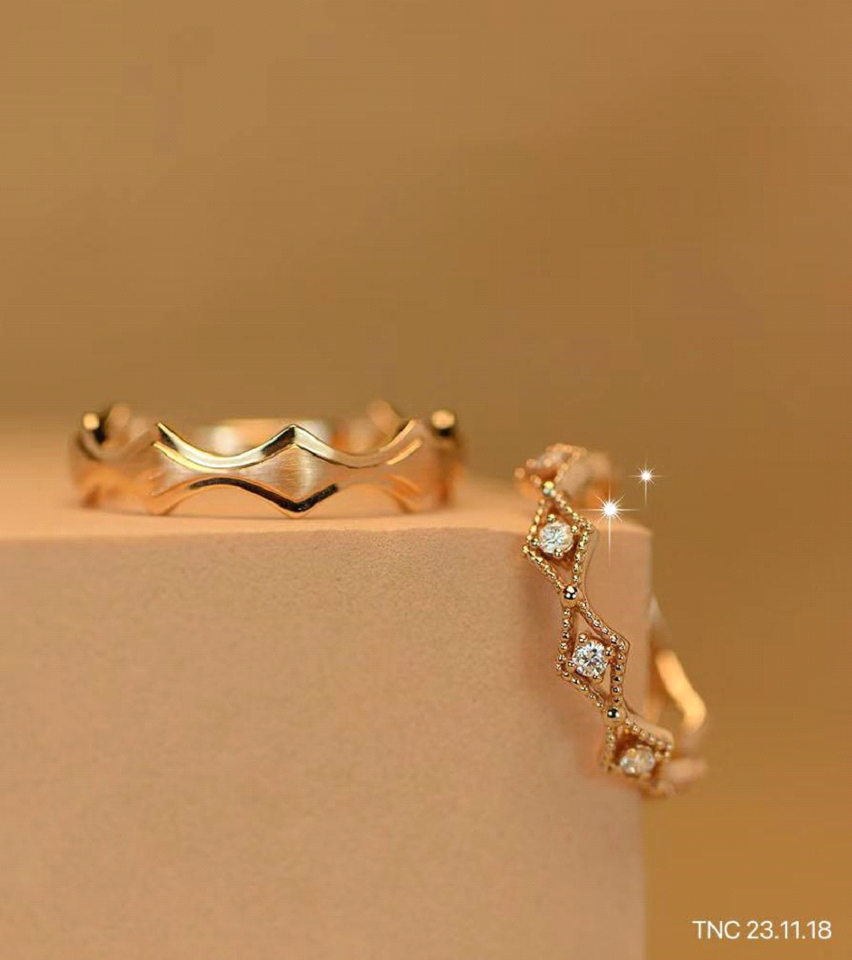 ⦁ Điểm nhấn: Đá quý nhỏ hoặc kim cương tạo độ lấp lánh nhẹ nhàng.