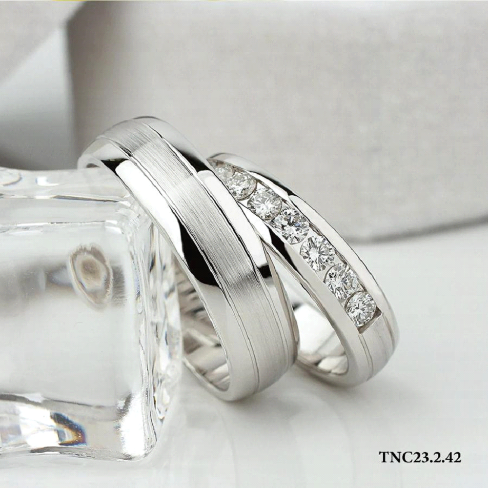Mẫu nhẫn cưới TNC 23.2.42 với nguyên liệu từ Platin cùng Kim Cương mang đến vẻ đẹp đẳng cấp khác biệt