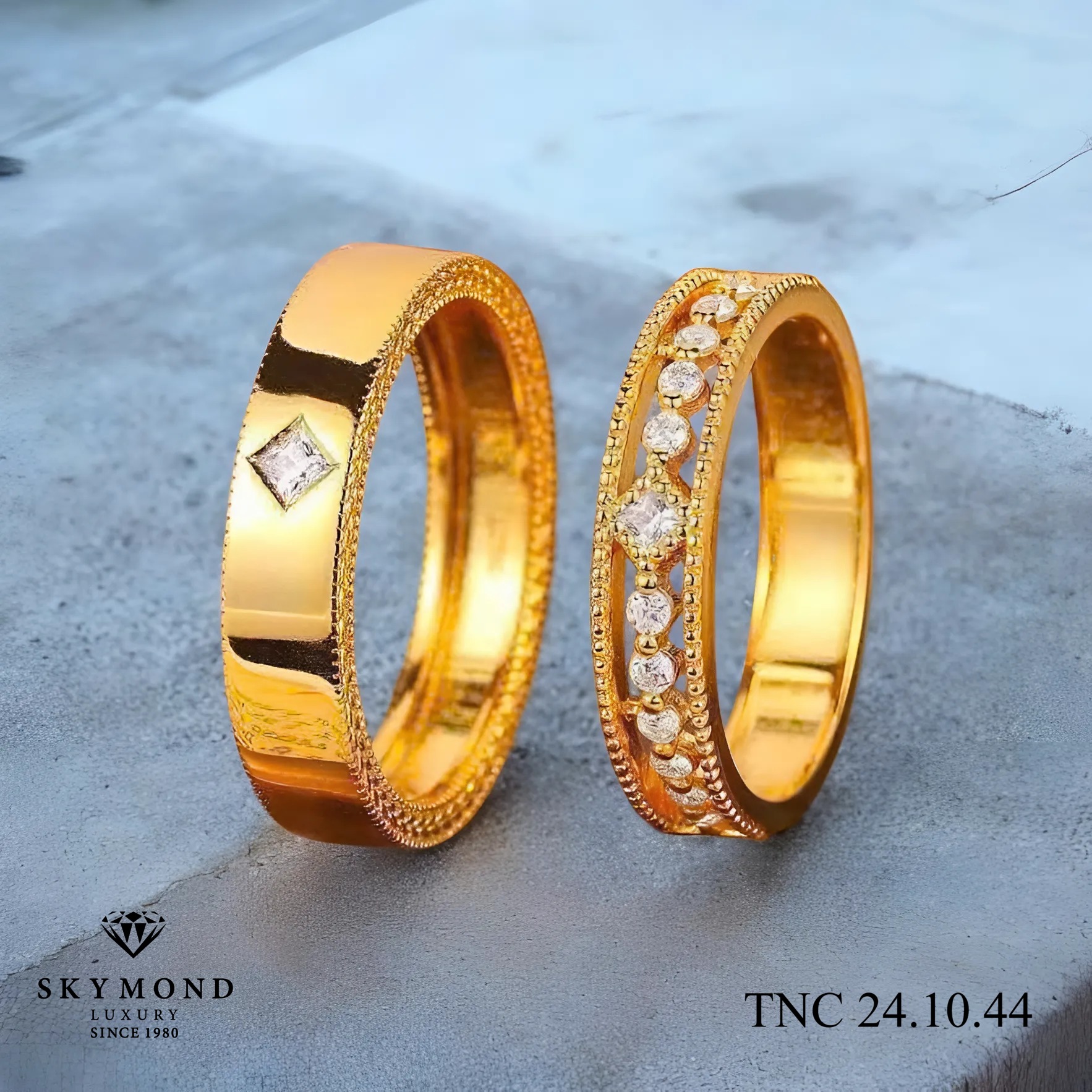 Các mẫu nhẫn cưới truyền thống thường có thiết kế bản to và đính đá lớn, tuy nhiên, hiện nay, những mẫu nhẫn cưới thanh mảnh, kết hợp đá tấm và đá nhỏ lại được yêu thích. Các thiết kế này mang đến vẻ đẹp nhẹ nhàng, tinh tế và phù hợp với những cặp đôi trẻ. Các màu sắc của vàng như vàng hồng, vàng trắng và vàng vàng kết hợp với đá quý làm điểm nhấn cho mẫu nhẫn cưới.