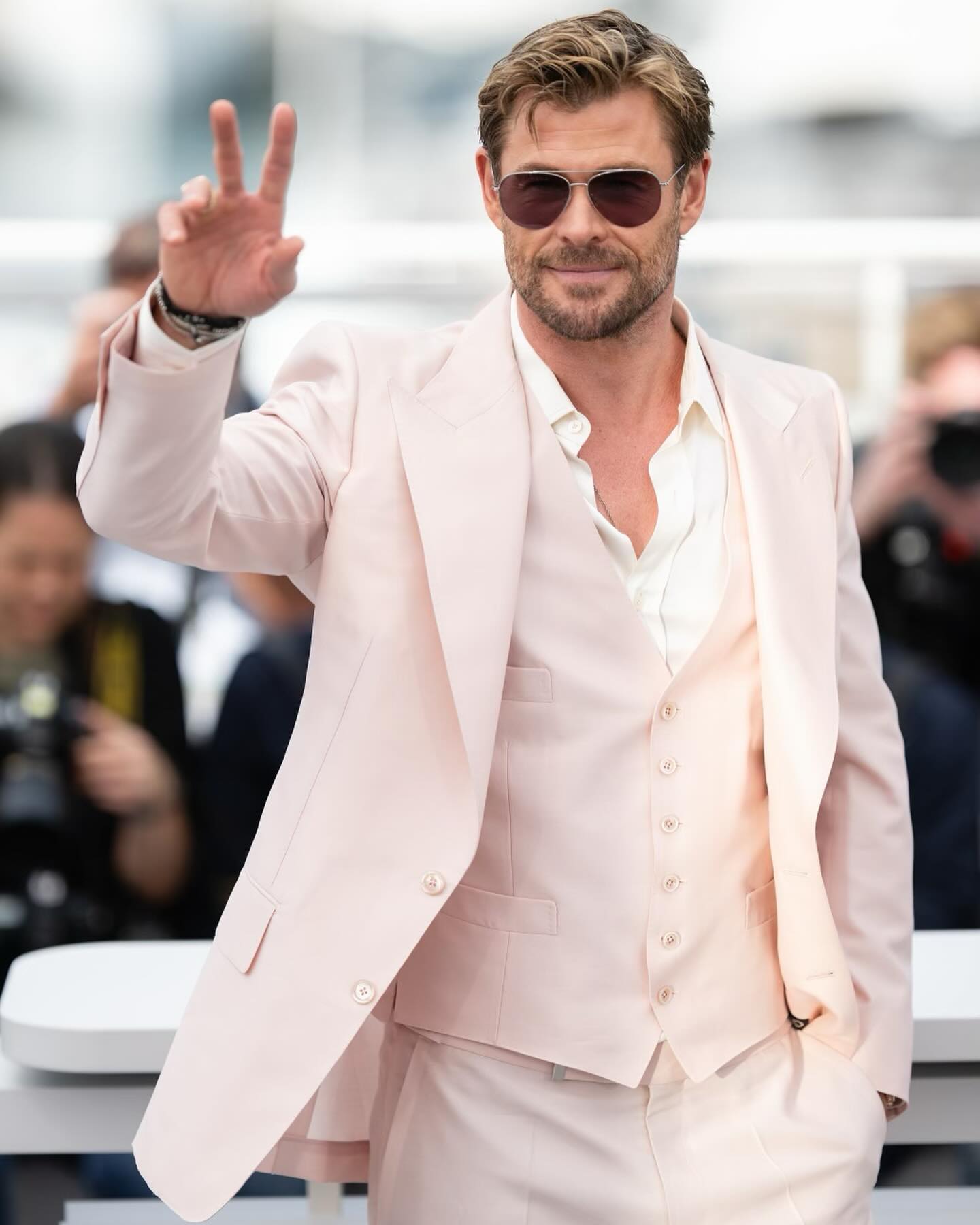 Trước đó tại Liên hoan phim Cannes 2024, Chris Hemsworth đốt cháy thảm đỏ với bộ suit hồng, khẳng định sức hút nam tính vượt mọi khuôn khổ. “Thần Sấm” nước Úc chọn bộ suit ba mảnh hồng nhạt từ Tom Ford, tôn lên vóc dáng cường tráng và phong thái cuốn hút. Lựa chọn gam màu tưởng chừng “khó nhằn” này chẳng thể làm khó Hemsworth, trái lại càng tôn lên thần thái mạnh mẽ, lịch lãm của anh.