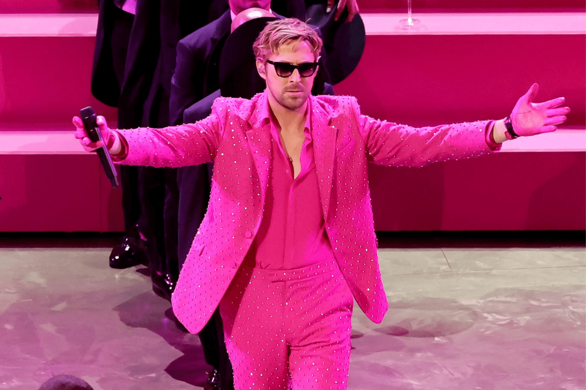Nam thần “Ken” bước ra từ Barbie (2023) biến thảm đỏ Oscar 2024 thành sàn diễn thời trang với bộ suit hồng ấn tượng từ Gucci. Được thiết kế riêng cho Gosling, bộ trang phục bao gồm suit một hàng khuy đính cườm, quần tây, áo sơ mi crepe lụa và giày da đen. Điểm nhấn là những chi tiết thủ công tinh xảo như pha lê thêu tay, găng tay da hồng và kính râm Gucci, tạo nên sự tôn vinh hoàn hảo cho màn trình diễn huyền thoại Diamonds Are a Girl’s Best Friend của Marilyn Monroe.