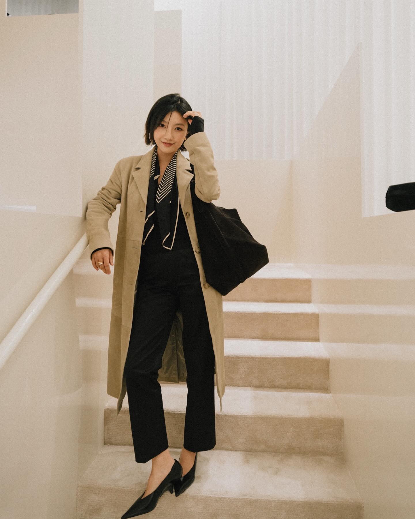 Sự kết hợp giữa đen và be (Beige) là hiện thân của phong cách "Old Money" – vẻ đẹp của sự giàu có truyền thống, không phô trương nhưng cực kỳ đẳng cấp.