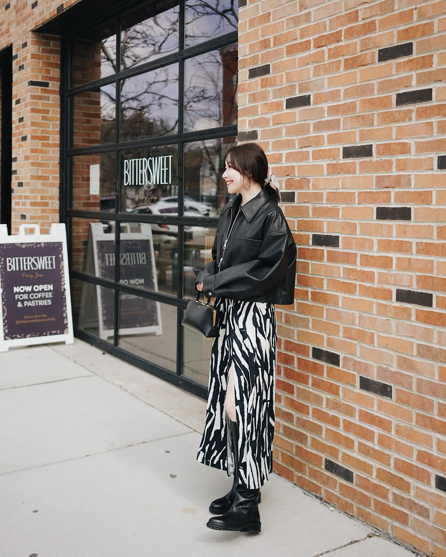 Thay vì phối áo sơ mi trắng vừa vặn với quần tây đen, hãy thử một chiếc sơ mi trắng dáng rộng (oversized) khoác ngoài áo crop-top đen và quần legging da. Sự phóng khoáng trong phom dáng giúp đen-trắng trở nên thời thượng và mang đậm hơi thở của đường phố Milan hay Paris.