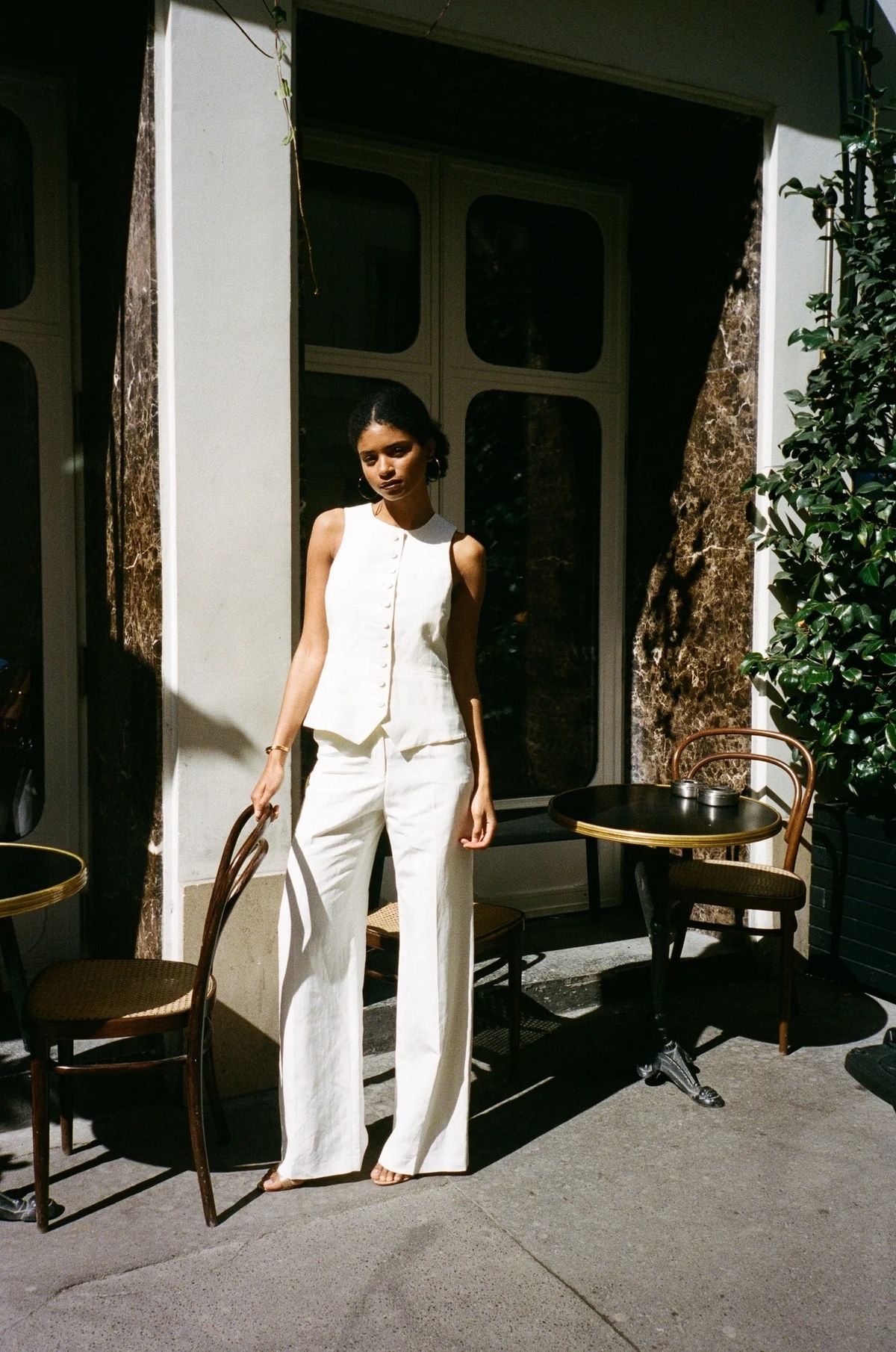Để có một bộ trang phục công sở trang trọng, áo sơ mi trắng là một lựa chọn không thể thiếu. Một chiếc áo sơ mi cổ điển, được sơ vin gọn gàng với quần ống rộng, kết hợp cùng phụ kiện thắt lưng và một đôi giày cao gót mũi nhọn để có một dáng đứng cao ráo và thanh thoát hơn. Đừng quên phụ kiện thắt lưng để tạo điểm nhấn cho trang phục. Đối với áo sơ mi trắng, quần tây ống rộng màu trắng, đen hoặc màu trung tính là sự lựa chọn tối ưu, những gam màu này nhã nhặn vừa đủ để khiến tổng thể trông sang trọng và quý phái.