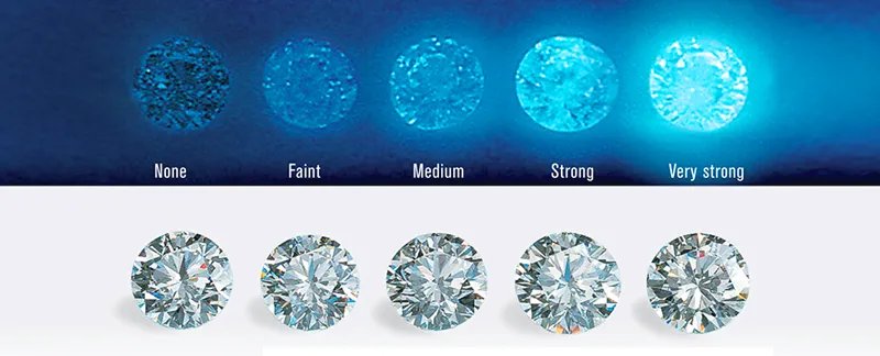 - Fluorescence (Độ huỳnh quang): Tôi khuyên bạn nên chọn mức "None" hoặc "Faint". Những viên có độ huỳnh quang "Strong" thường sẽ có giá rẻ hơn nhưng đôi khi khiến viên đá trông hơi đục (milky) dưới ánh sáng mặt trời.