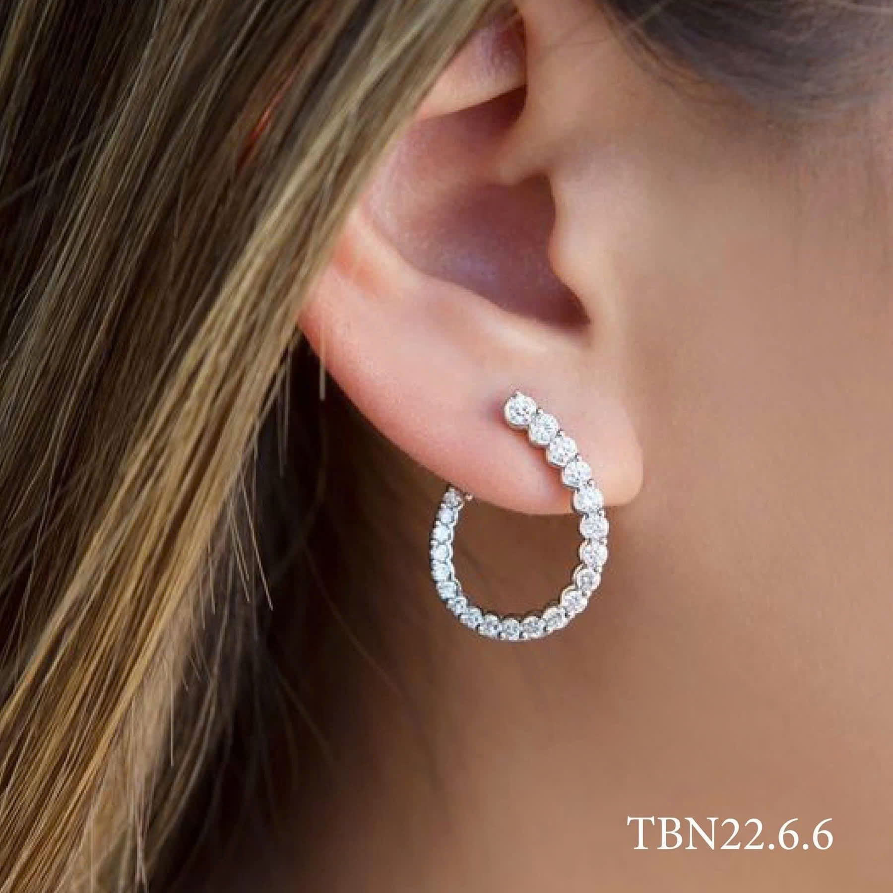 Nhỏ nhắn, tinh tế với đường cong uốn dưới tai đính kim cương trẳng lốp, hoàn hảo cho phong cách quiet luxury.