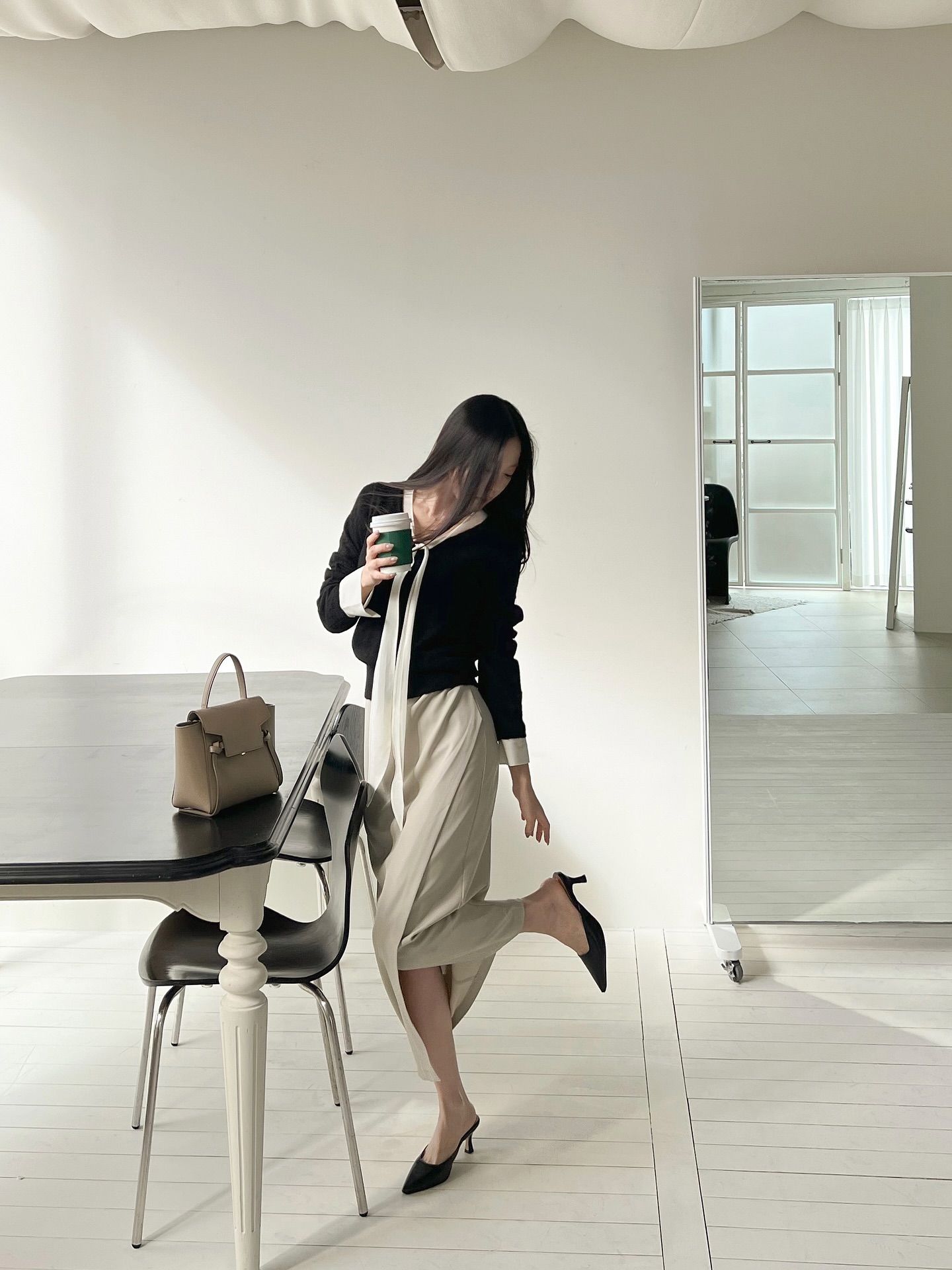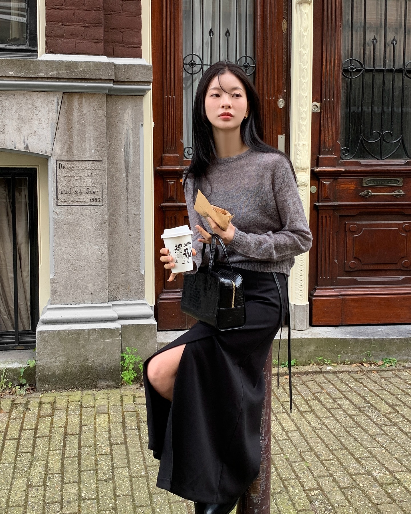 Hãy thử phối chân váy xẻ tà với áo len mỏng và sơ vin một phần. Sự tương phản giữa phần thân trên kín đáo, ấm áp và phần chân váy bay bổng, thoáng đãng bên dưới chính là cách các tín đồ thời trang Paris thường áp dụng để giữ được vẻ ngoài thanh thoát.