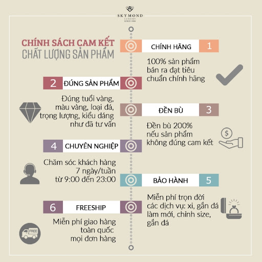Là thương hiệu thiết kế trang sức Platin hàng đầu Việt Nam, Skymond Luxury đã trở thành địa chỉ đáng tin cậy của nhiều khách hàng mỗi khi có nhu cầu mua sắm trang sức online. Nhất quán với tiêu chí “ Trao chất lượng, nhận niềm tin”, Skymond liên tục triển khai những chính sách ưu việt phục vụ nhu cầu của khách hàng, đặc biệt là quy trình tư vấn online, vận chuyển và bảo hàng an tâm với mọi đơn hàng online.