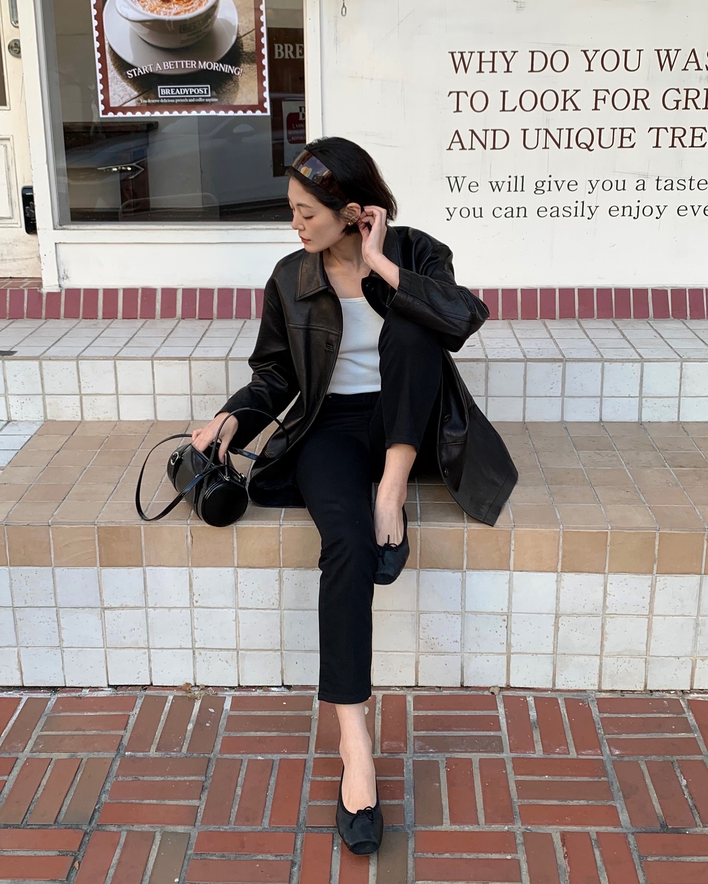 Trong một set đồ đen đơn giản, chiếc thắt lưng chính là "linh hồn". Một chiếc thắt lưng da bò thật với mặt khóa kim loại sáng bóng sẽ phân định rõ rệt vòng eo, giúp bạn trông cao hơn và biến một bộ đồ mặc nhà thành một bộ đồ có thể tự tin bước vào một cuộc họp quan trọng.