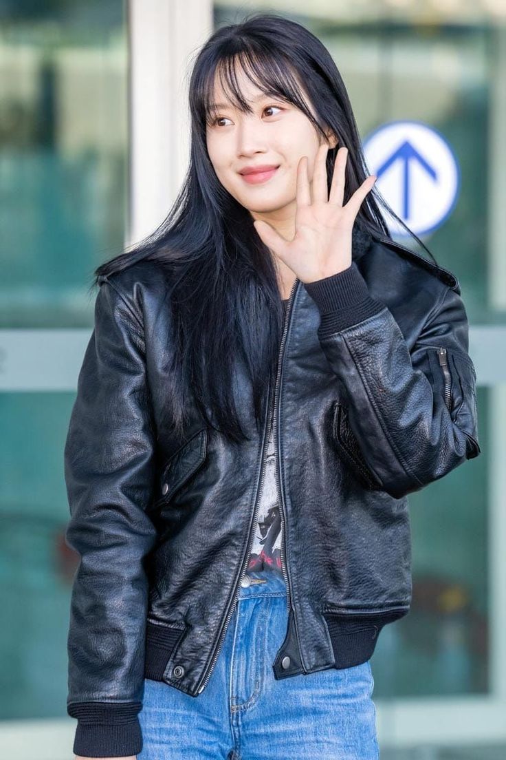 Trong “Kẻ Thù Dấu Yêu” cũng như ngoài đời thực, Moon Ga-young thường xuyên lựa chọn những set đồ pha chút nổi loạn nhưng cực kỳ thời thượng, điển hình là áo khoác da oversized phối cùng quần jeans. Đây là combo hoàn hảo vừa thể hiện cá tính mạnh mẽ vừa giữ được sự thanh lịch cần có của một quý cô hiện đại.